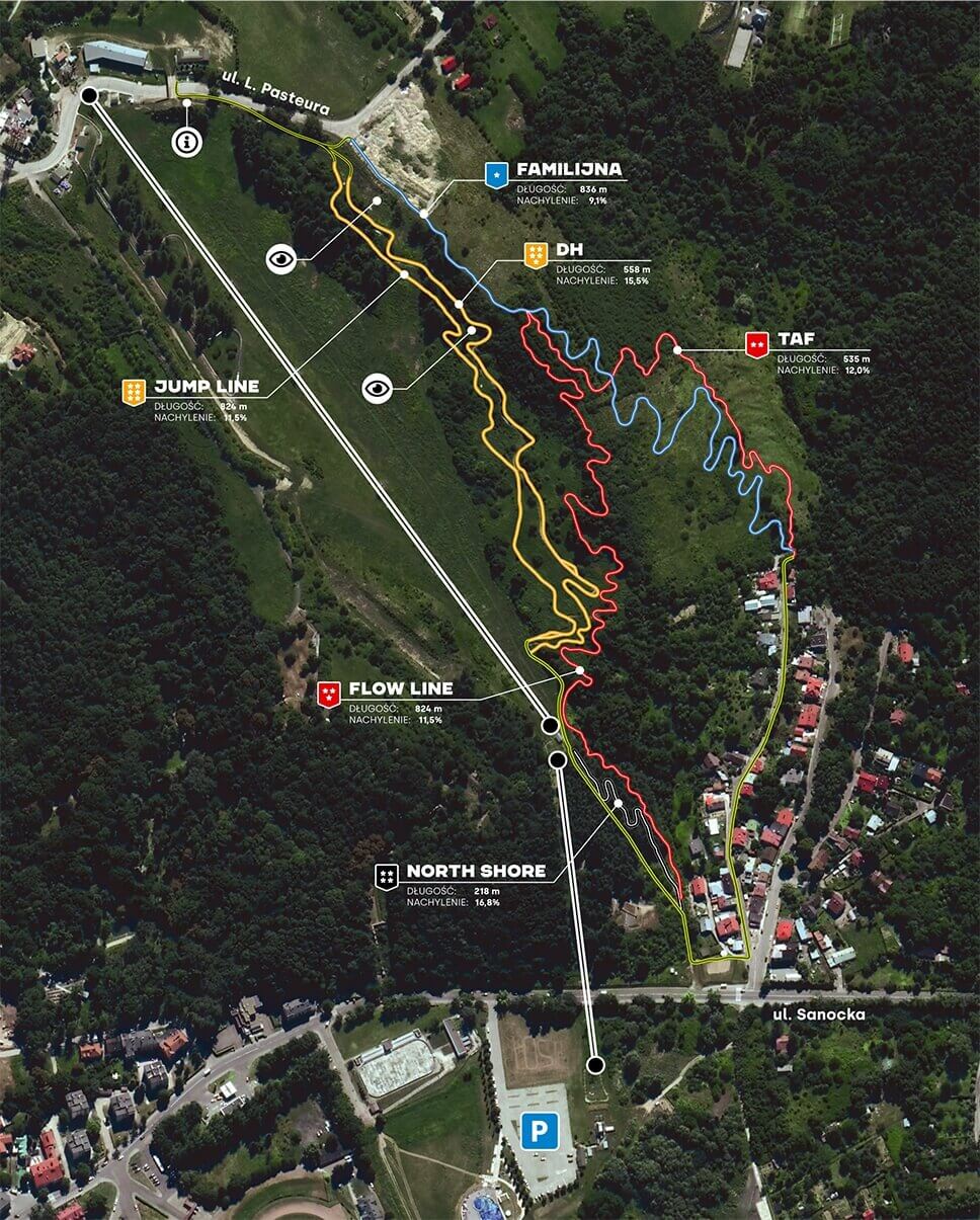 Bike Park FORTTRAILS - trasy rowerowe przeznaczone dla każdego. Ścieżki położone w centrum miasta tuż przy stoku narciarskim o różnym stopniu trudności. Bike Park FORT TRAILS to idealne miejsce do treningów. Progresywne ścieżki dadzą dużo satysfakcji najbardziej wymagającym riderom.